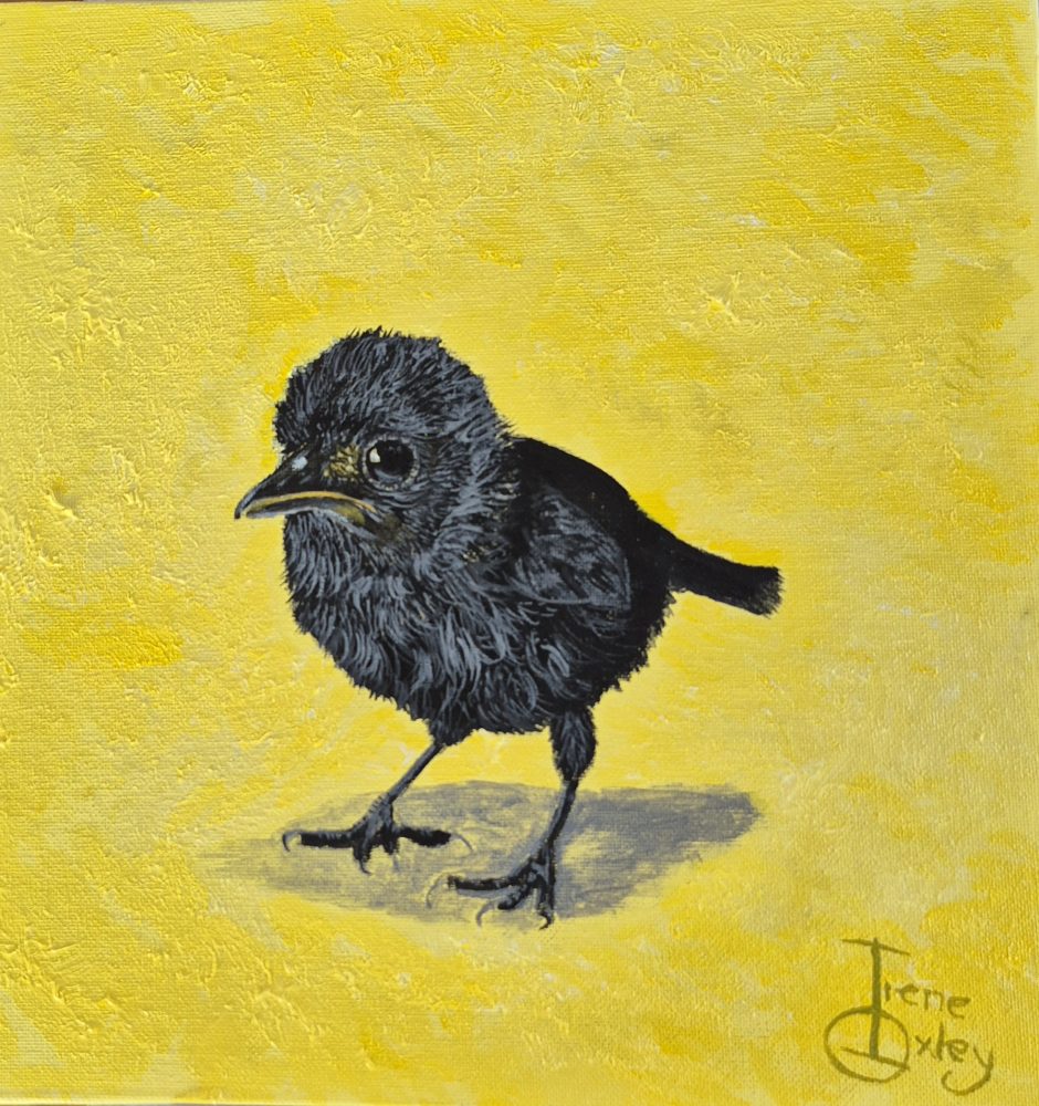 Irene Oxley COUNTRY: South Africa ARTWORK MEDIUM: Acrylic PAINT LIST: Iris-Lemon Yellow. Liquitex Black. Iris Titanium White. ARTWORK SIZE: 25.4×25.4cm