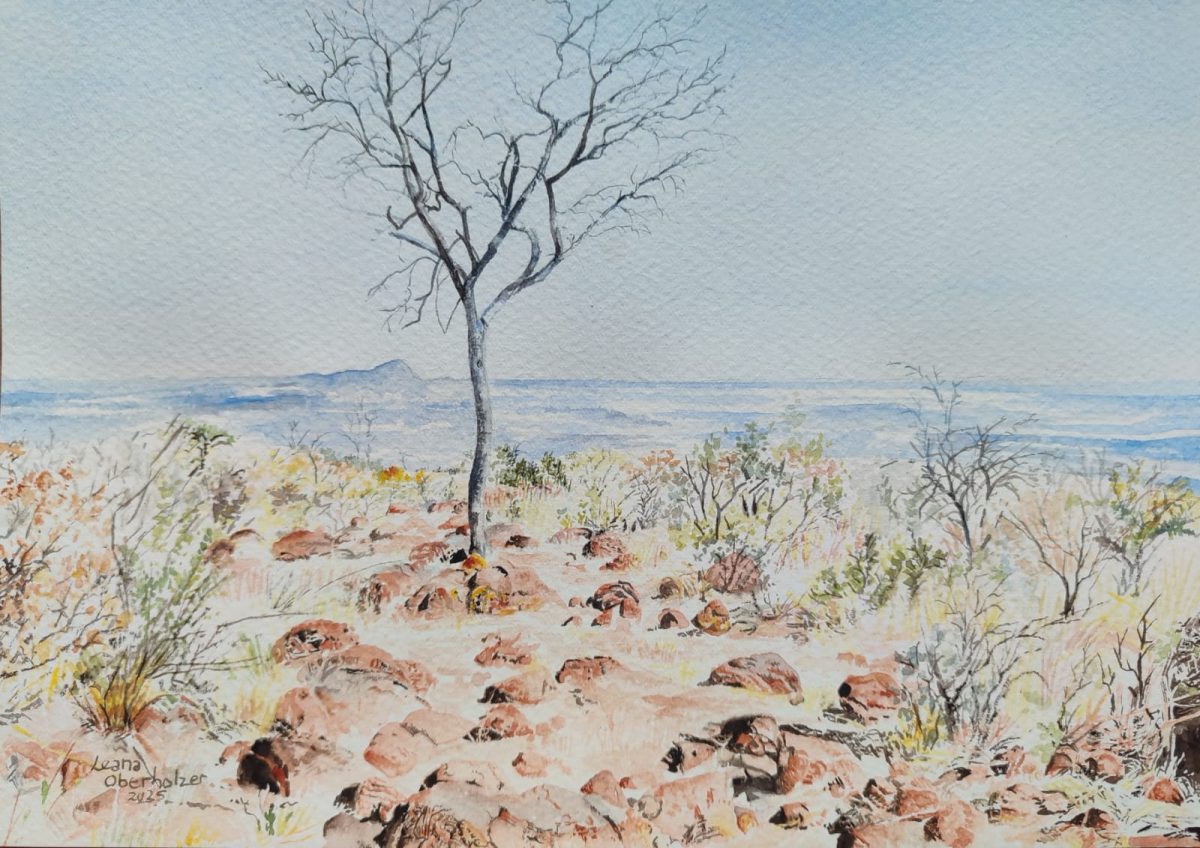 Ros Brown COUNTRY: South Africa ARTWORK MEDIUM: Watercolor PAINT LIST: Burnt Sienna Yellow Ochre Prussian Blue Violet ARTWORK SIZE: 34cm x 51cm