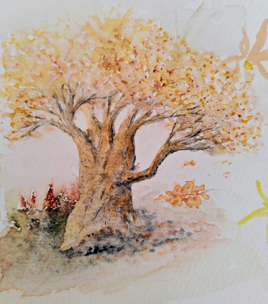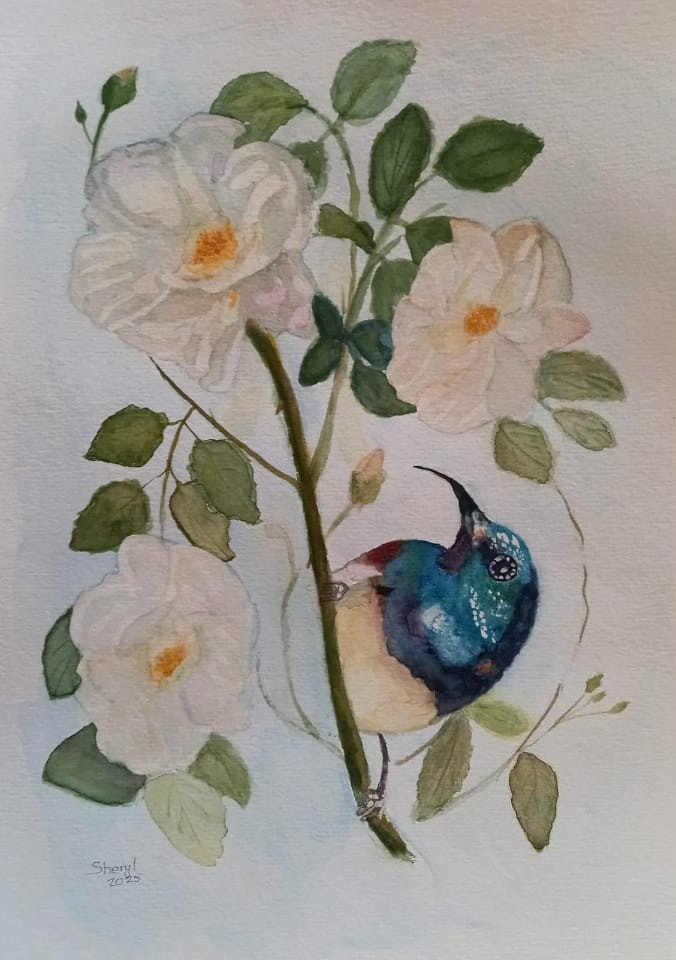 Wilma Marais COUNTRY: South Africa ARTWORK MEDIUM: Watercolor PAINT LIST: Daniel Smith Quinacridone Deep Gold Undersea Green Lunar Blue Quinacridone Magenta ARTWORK SIZE: 26.0 x 17.5cm DETAILS: Source is from a photograph I took in my garden.
