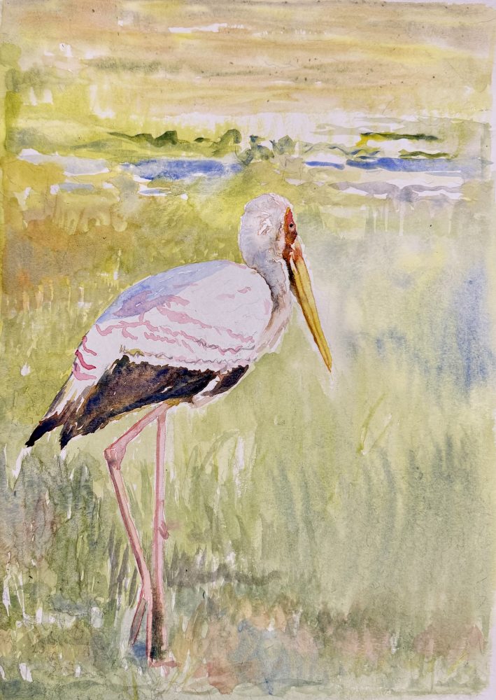 Patricia Saunders COUNTRY: South Africa ARTWORK MEDIUM: Watercolor PAINT LIST: Neutral Tint, Burnt Umber, Raw Umber, Carmine ARTWORK SIZE: 26 x 38cm