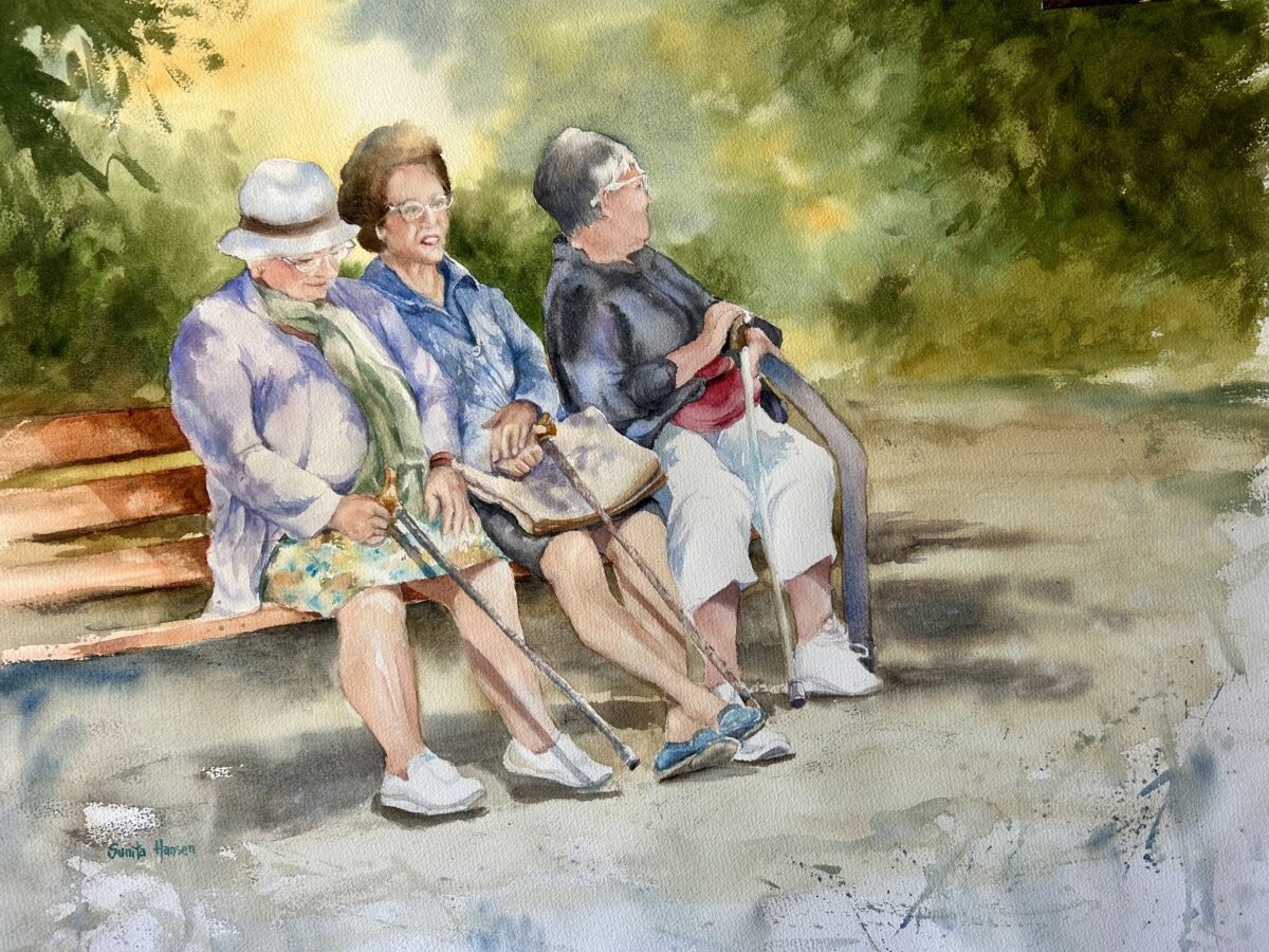 I was inspired by these three ladies from Spain sitting on a bench in a park in dappled sunlight. They display a calmfulness and aura of peace. I could'nt help wondering what their stories are and what advice they would have for younger women today.