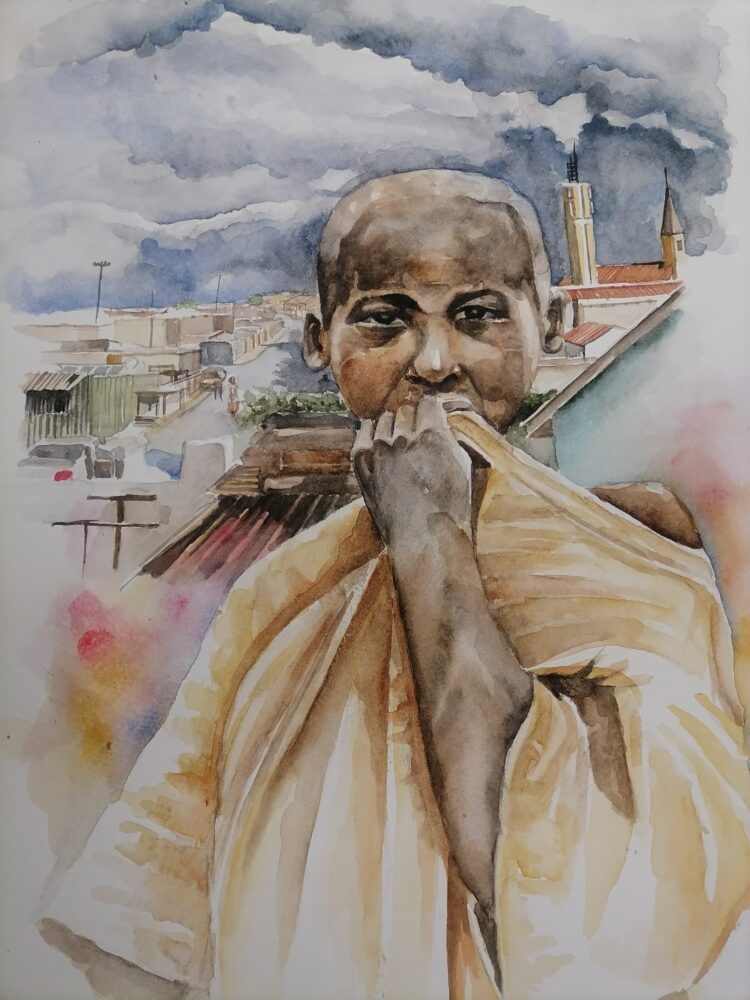 The artwork is about heroes that emerges from the dusty street of the township.