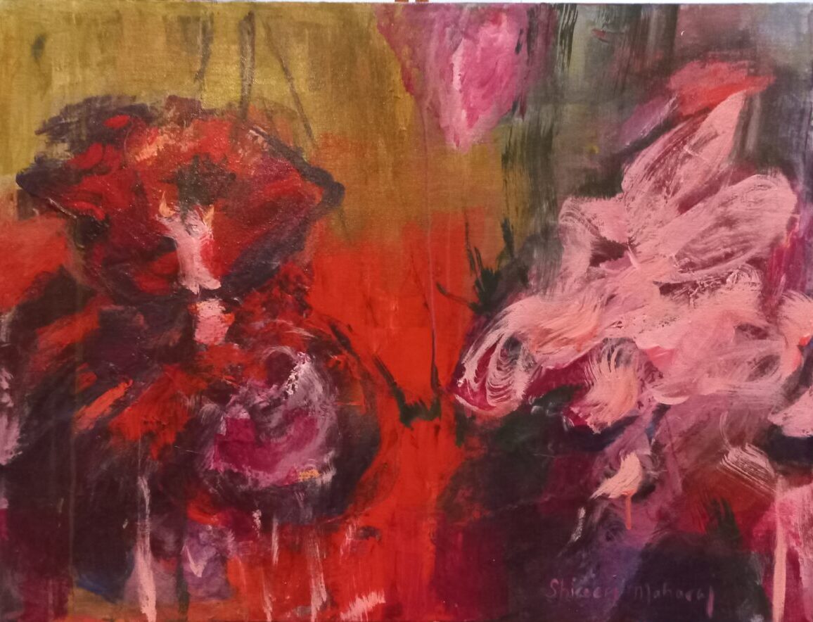 This Abstract Acrylic painting allows you to use your imagination, to assume shapes and colour different shades of RED/Violet. Creating an explosion of Energy in your mind/ Brush strokes are busy captivating and mind-blowing. Yet there are areas of calm and peace in the distance, with the use of green.