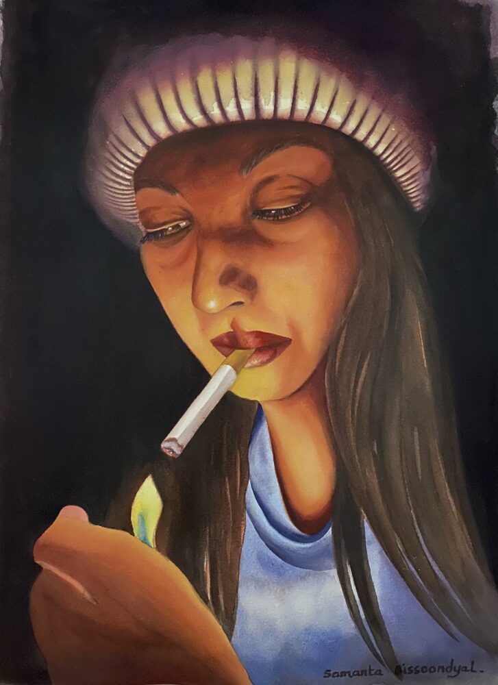 Samanta Bissoondyal- Ramguttee COUNTRY: Mauritius ARTWORK MEDIUM: Watercolor PAINT LIST: A dark surrounding, a gloomy atmosphere, a little distraction and some reflection to ease it all. But is it worth playing with fire⦠ARTWORK SIZE: A3