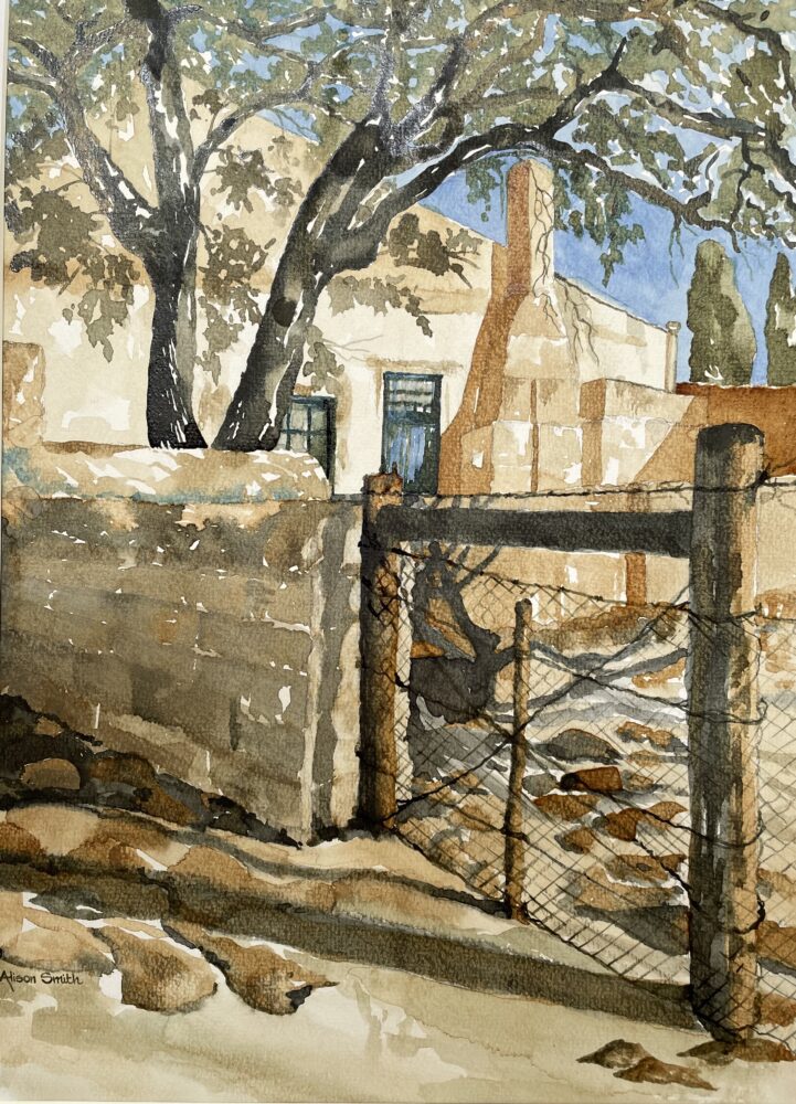 Alison Smith COUNTRY: South Africa ARTWORK MEDIUM: Ink PAINT LIST: I painted this neglected house in Nieu Bethesda in a mixture of coffee and ink. Quite challenging mixing the right colours. ARTWORK SIZE: 40 x 30cm
