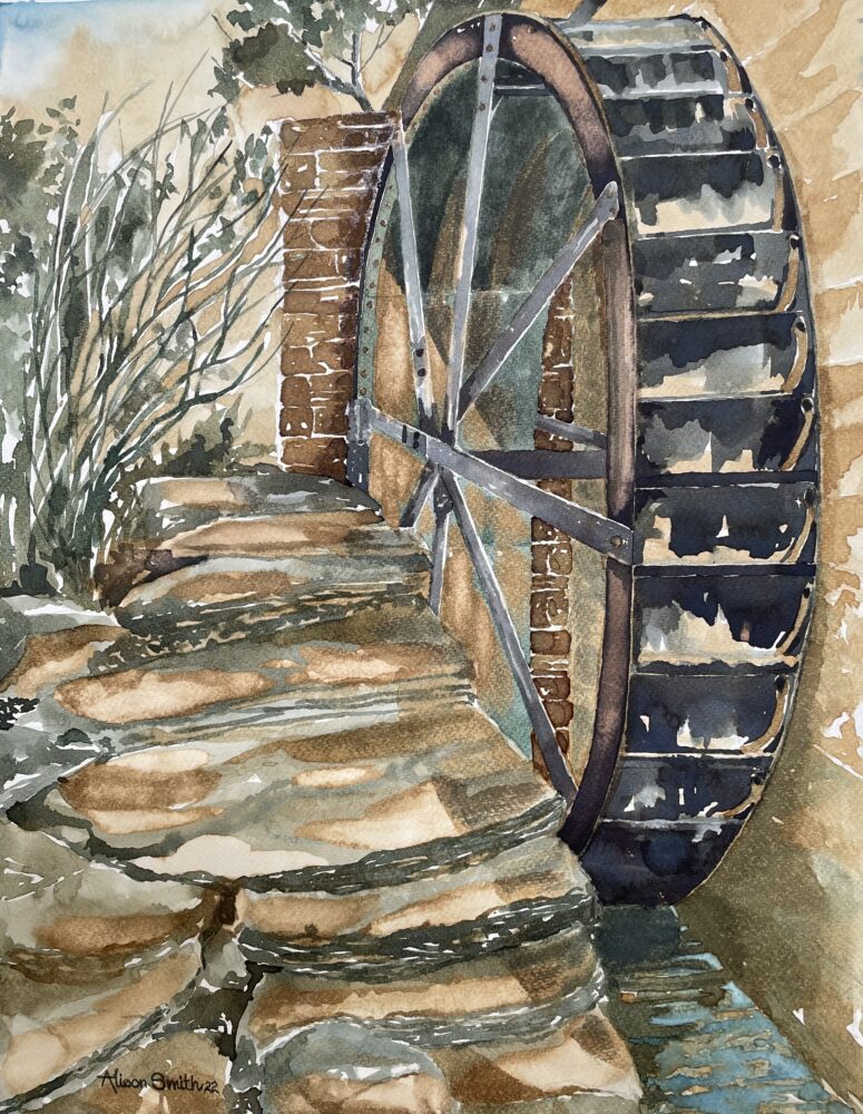 Alison Smith COUNTRY: South Africa ARTWORK MEDIUM: Ink PAINT LIST: On my ramblings through Nieu Bethesda I came upon this old water mill and decided to attempt the painting in a mixture of coffee and ink. Quite challenging mixing the right colours. ARTWORK SIZE: 46 x 36cm