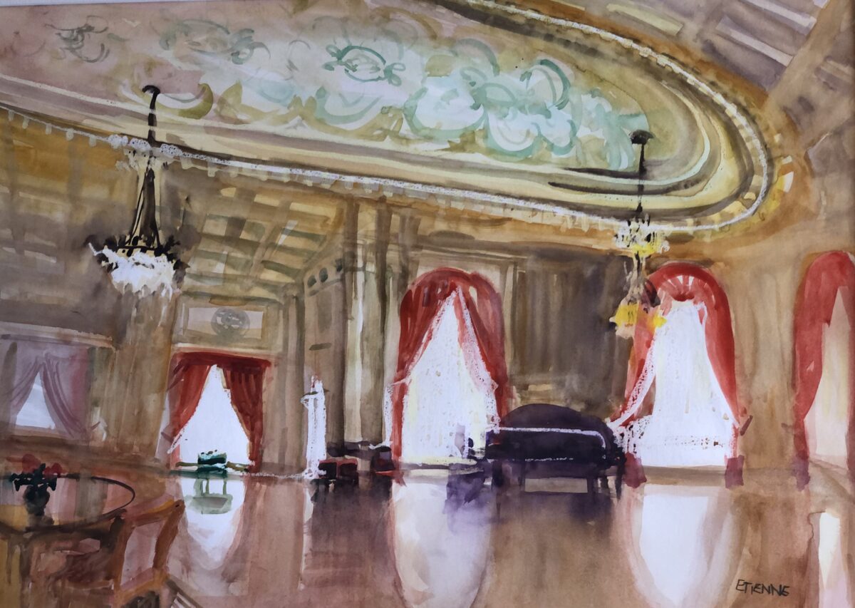 Etienne Labuschagne COUNTRY: South Africa ARTWORK MEDIUM: Watercolor ARTWORK SIZE: 70x50cm DETAILS: The stillness of a solitary figure contrasts with recent mass events in the abbey like the coronation of King Carles