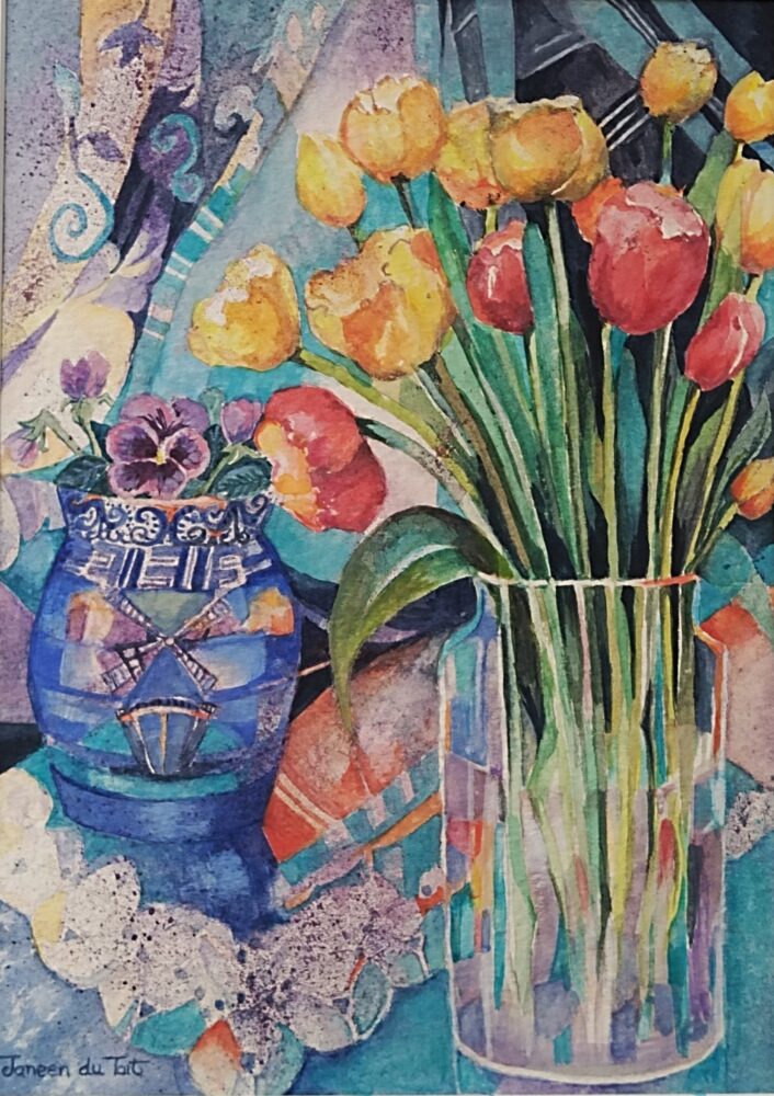 Janeen du Toit COUNTRY: South Africa ARTWORK MEDIUM: Watercolor | Gouache ARTWORK SIZE: 36 x 54 cms DETAILS: Decided to challenge myself technically and creatively to paint a still life on a narrow ledge, at the same making it a lively painting.