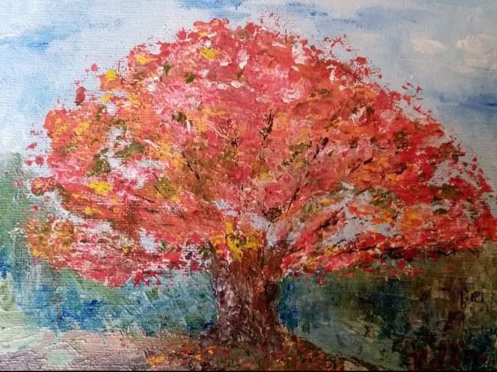 Olga Anthony COUNTRY: Mauritius ARTWORK MEDIUM: Watercolor PAINT LIST: The first red flowers of flamboyant tree makes you feel happier as the festive season is on the way. Blue sky, turquoise ocean and red flame of flamboyant tree – that’s the colors of Mauritian summer. ARTWORK SIZE: 27 x 22cm