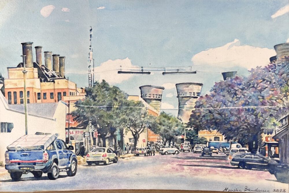 Nyasha Bandama COUNTRY: Zimbabwe ARTWORK MEDIUM: Watercolor ARTWORK SIZE: 40x27cm DETAILS: The iconic cooling towers of the Bulawayo Electricity power station. My interest was the jacaranda tree in full summer bloom juxtaposed with the cooling towers gracing the cityscape.