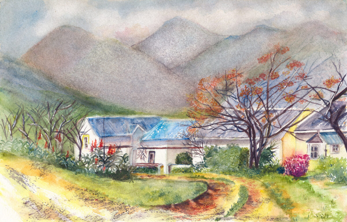 Barbara Mayers COUNTRY: South Africa ARTWORK MEDIUM: Watercolor ARTWORK SIZE: 245 x 355 DETAILS: ITS ALWAYS MAN VERSUS NATURE, BUT IN IN THE COLOUR LIGHTSPECTRUM, NATURE USUALLY WINS. IN THIS PAINTING I’VE TRIED TO SHOW HOW NATURE CAN ENHANCE MAN’S HANDIWORK AND MAKE HIS ACCOMPLISHMENTS RESONATE WITH COLOUR.