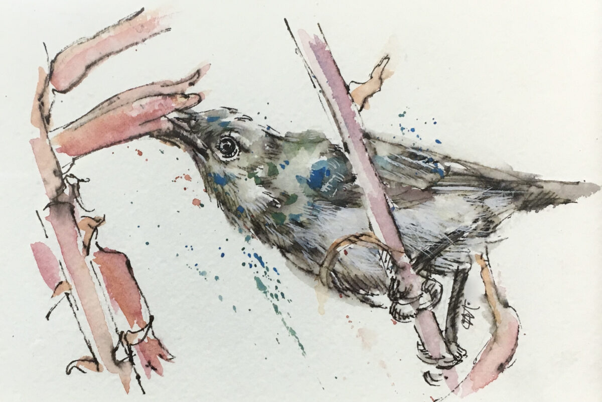 Shelley Mattinson COUNTRY: South Africa ARTWORK MEDIUM: Watercolor ARTWORK SIZE: 12×17.5cm DETAILS: Sunbirds love nectar producing flowers.