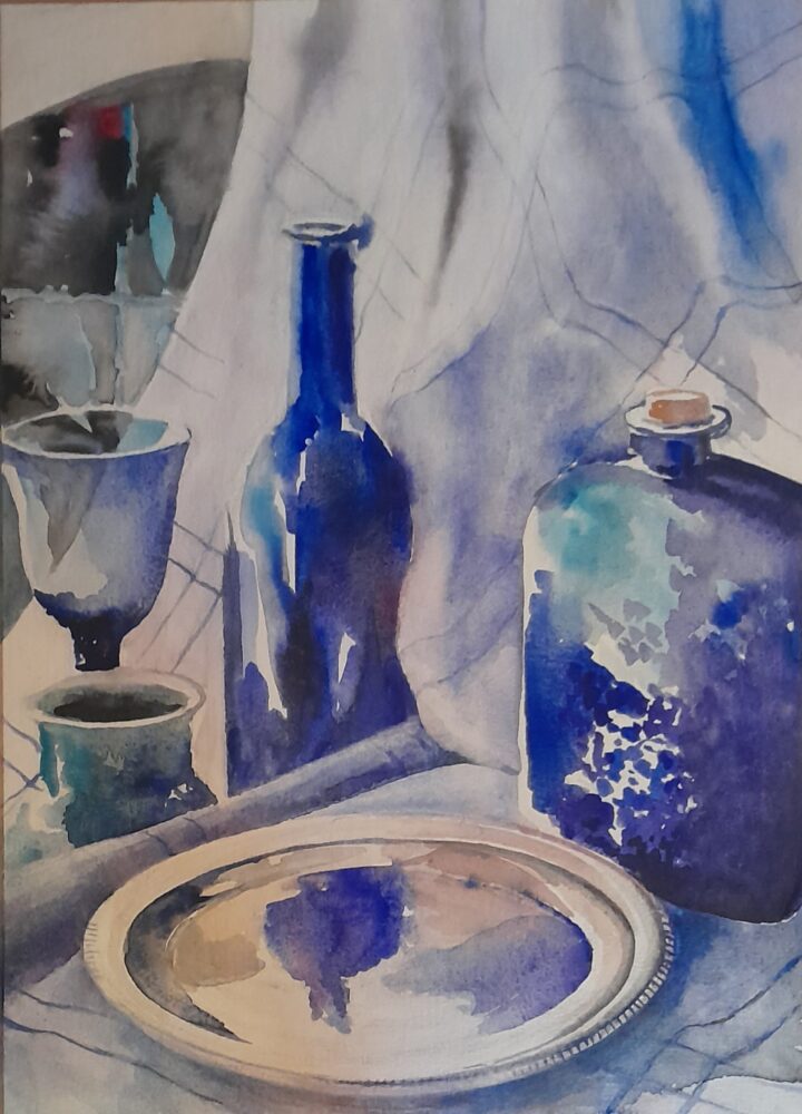 Wendy Lovell Greene COUNTRY: South Africa ARTWORK MEDIUM: Watercolor PAINT LIST: French Ultramarine Blue Cadmium Yellow Permanent Rose Cadmium Lemon ARTWORK SIZE: 41 x 28cm DETAILS: 300g C.P. Paper. Fr. Ultra Marine Blue for background wash; clear paper for highlights.