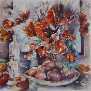 - Clarrise Cliff Milkjug With Marigolds – Still Life